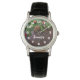 Personalized watch with a rustic photograph of a brown wooden table with pinecones, pine needles, snow, and Christmas ornaments. Festive and lovely.