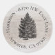 Custom holiday return address stickers personalized with your family name and address or other custom text. This modern rustic design features your text in a circle layout around a Christmas tree graphic on a faux whitewashed wood background. Use the design tools to edit the text fonts and colors or upload your own photos to create a one of a kind round return address label.