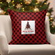 Rustic Christmas Trees Buffalo Plaid Name Pillow