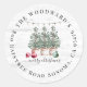 Complete your holiday envelopes with this rustic Christmas return address label featuring watercolor pine trees in burlap wraps, festive ornaments, a subtle string light garland, and the phrase “Merry Christmas” in elegant script. Your custom family name and address curve around the edges on a snowy white barn wood background, creating the perfect finishing touch for cards, gifts, or winter correspondence with a cozy farmhouse feel.