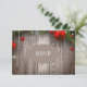 Rustic Christmas Wedding Invitation RSVP with red ornament, wedding shoes, greens, wood.