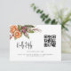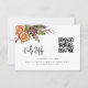 Rustic Christmas wedding RSVP card featuring watercolor illustration of winter botanicals including, mistletoe, pine tree branch, berries, orange, etc. with a QR code.