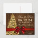Rustic Wedding "Save The Date" design with Christmas Tree, Lights & Red Ribbon on wood, and custom names and date text. Impress your family and friends with this stylish and modern design. Fully customizable! Easy to use and easy to personalize.