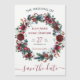 Elegant modern script rustic Christmas wedding stylish save the date magnetic card featuring a watercolor wreath of red burgundy peony roses, seasonal hunter green pine boughs, fir branches, red berries, and greenery foliage. +++++++++ Suitable for elegant rustic chic winter Christmas themed weddings.