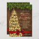 Rustic Christmas Wedding Tree, Lights & Red Ribbon Invitation