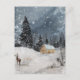 Rustic Christmas Winter Night Snow Cabin Deer Holiday Postcard