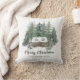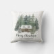 Add a personalized rustic woodland touch to your holiday home decor with this Merry Christmas pillow, featuring a cozy winter cabin nestled in the snowy pine forest. Please see the collection for more matching products.