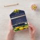 Capture the essence of rustic elegance with our navy blue and yellow citrus lemon fruit wedding all-in-one invitation. The classic navy blue background adorned with cheerful yellow citrus fruits adds a touch of brightness to your special day. At the back, your guests will find a lovely photo of the couple, accompanied by a website and QR code for convenient RSVP. It's the perfect blend of sophistication and charm, inviting your loved ones to share in the joy of your wedding celebration!
