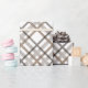 This contemporary wrapping paper, ideal for gift wrapping or decoupage, features a tartan plaid pattern in tan, beige, dark brown, and white. This modern yet simple and whimsical design is perfect for wrapping fun birthday, surprise, or masculine Christmas holiday gifts. It's available on products such as wrapping paper, tissue paper, gift tags, bags, favor boxes, stickers, and ribbons.