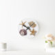 rustic coastal beach chic seashell starfish round clock