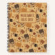 Jot down your thoughts in this notebook featuring a charming coffee mug and heart design. The warm, rustic tones and handwritten “coffee” text create a cozy, caffeine-inspired look for coffee enthusiasts. You can customize this notebook by changing the color of the spiral binding and the inside pages. Choose from 10 different formats, including wide-ruled, sketch, grid, checklist, and recipe. Additionally, you can personalize the notebook by adding a name and a brief description, such as "Notebook," "Journal," "Recipes," or "Sketches." It makes for a fantastic gift idea!