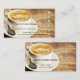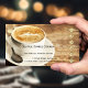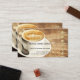 Loyalty business card with gold and rose gold stylized punch numbers on a watercolor image with a fresh coffee on a rustic wood table. The punch numbers are on a separate file and you can delete them if you prefer custom fields.
