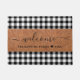 Rustic coir welcome doormat with black and white buffalo plaid border and personalized with family name and established year. NOTE: THE COIR IS ONLY A PRINTED EFFECT.