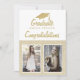 Rustic Congratulations Graduate 2 Photo Collage Card. Beige rustic background, golden graduation cap and text. Personalize with your photos and the name of the graduate on the front.
