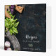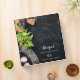 A cookbook binder for a foodie and your favorite family recipes. On the cover: fresh food, herbs, basil onions, a wooden cutting board a herbal chopper on a painter's dark rustic canvas with paint stains. Personalize and add your family name and text both on the front and on the spine.
