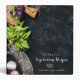 A cookbook binder for a foodie and your favorite vegitarian recipes. On the cover: fresh food, herbs, basil onions, a wooden cutting board a herbal chopper on a painter's dark rustic canvas with paint stains. Personalize and add your name and text both on the front and on the spine.