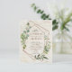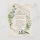 Modern and trendy, this postcard wedding invitation design features a faux copper geometric, embellished with watercolor eucalyptus over a faux white birch bark texture. The couple's names and some wedding details are in a matching copper color, and the back of the postcard features your favorite vertical engagement photo. Copyright Elegant Invites. All rights reserved.