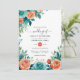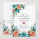 Rustic Coral Floral Tropical Teal Wedding Invitation