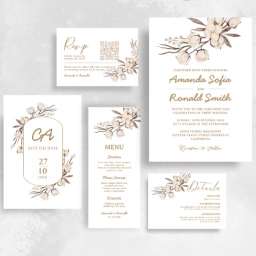 Announce your special day with this Rustic Cotton Floral Wedding Save the Date card. Featuring delicate cotton bloom illustrations and sophisticated typography, this design exudes rustic elegance, perfect for vintage, minimalist, or nature-inspired wedding themes. The soft neutral tones and timeless design set the tone for your celebration, ensuring your guests save the date in style. Fully customizable to include your wedding details.