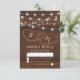 Country barn wedding rsvp cards featuring a rustic wood background, two carved hearts, your initials and a wedding response template that is easy to personalize.