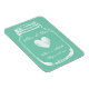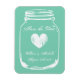 Rustic country chic mason jar Save the date magnet with cute heart. Vintage country chic mason jar save the date magnets for wedding party. Cute mint green design personalized with name of bride and groom plus date of marriage. Customizable background color. Perfect for rustic outdoor garden / barn wedding in the summer, june, july, august, september. Elegant stylish script typography. Faded heart icon. Pretty distressed weathered grunge style look. Classy fridge magnets for soon to be married couple tying the knot.