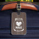 Rustic country chic wood grain panel mason jar travel luggage tag. Vintage heart design for newly weds bags and suitcases. Cute brown and white wedding monogram logo design with initials of bride and groom. Distressed look design. Rustic style monogrammed for honeymooners. Romantic grunge style typography. Personalize for mr and mrs / just married husband and wife. Customizable background color ie black.
