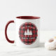 Stylish, country rustic themed coffee mugs, featuring your name and "Family Cabin", Ranch, Cottage or other text along with its established date and location if desired. This custom, unique design features charming rustic country style text with a white silhouette of pine trees on a classic red buffalo plaid print. Perfect for your christmas holiday season or any time of year. To see more designs like this, please visit my store here at "Zazzle.com/Store/Rustic_Charm". Thanks.