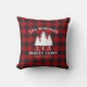 Personalize your country home with beautiful rustic themed, throw pillow cushions, featuring your name and "Family Cabin", Ranch, Cottage or other text along with its established date and location if desired. This custom, unique design features charming rustic country style text with a white silhouette of pine trees on a classic red buffalo plaid print. Perfect for your christmas holiday season or any time of year. To see more designs like this, please visit my store here at "Zazzle.com/Store/Rustic_Charm". Thanks.