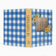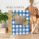 Rustic country retro farmhouse style personalized recipe organizer cookbook mini binder with natural brown wood and painted yellow sunflowers bouquets over a blue and white gingham plaid pattern. ++++++++++ Personalize it with your personal or family monogram, name, and your text! +++++++++ It can be a modern personal recipe book for your kitchen, a family cookbook, or a beautiful keepsake gift for grandma or for a chef, or for a wedding, bridal shower, anniversary, birthday, Christmas.