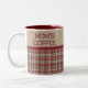 This rustic country farmhouse coffee mug is the perfect addition to your holiday kitchen decor. The top part has a tan lattice work pattern and the bottom is a pretty cranberry, white and tan plaid. A cranberry red faux grossgrain ribbon separates the patterns. The top is monogrammed with "MOM'S COFFEE", or you can personalize it with the specific person that it's for. There are other coordinating items in our shop too, so be sure to look at the entire collection. Although not traditional Christmas colors, it will still be a fun addition to your kitchen decor during the holidays.