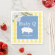These napkins are designed to perfectly complement my Floral, Pig, and Gingham BabyQ collection. They feature your names framed by a lush border of watercolor florals and greenery in soothing shades of cool grey and green, beautifully set against a blue and yellow gingham pattern. A charming choice for country-style summer baby showers and couples showers in garden or outdoor settings.