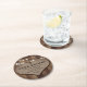 Complement your rustic country wedding party with these save the date coasters featuring a burlap heart and string lights against a barn wood background.