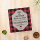 A charming, rustic country kitchen design featuring classic black and red buffalo check, and a personalized label.