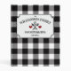 A charming, rustic country kitchen design featuring a classic black and white gingham plaid pattern, and a personalized label.