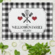 A charming, rustic country kitchen design featuring a classic black buffalo check pattern, and a personalized label. A great gift idea for birthday's, housewarming or just because!