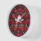 A stylish country rustic themed wall clock, featuring your name and "Lake House", Cabin, Ranch or other text along with its established date and location if desired. This custom, unique design features charming rustic country style text with a white silhouette of pine trees with boat oars or paddles on a classic red buffalo plaid print. Perfect for your christmas holiday season or any time of year. To see more designs like this, please visit my store here at "Zazzle.com/Store/Rustic_Charm". Thanks.