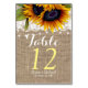Rustic autumn elegant wedding table number (two faces) with editable text featuring big sunflowers, strings of twinkle lights and a white lace border on a beige faux burlap background. Ideal for your summer night or autumn fall | garden | elegant rustic country | outdoor backyard themed wedding.