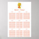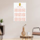 A beautiful seating chart, this design features sunflowers in a polka dot colored rain boot, with text in orange on a white background. Order yours today!