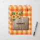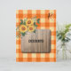 Custom text chapter divider page for rustic country style recipe organizer binder with sunflowers bouquet and distressed natural brown wood over a trendy rusty orange yellow terracotta plaid gingham pattern. +++++++++++ Personalize it with your text (recipe category title) and your family monogram / name initial!