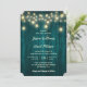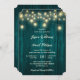 Rustic Country Teal Wood String Lights Wedding Invitation
