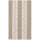 Rustic vintage traditional country farmhouse style large tablecloth on beige faux burlap featuring a beautiful white transparent lace with a floral pattern.