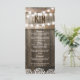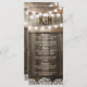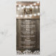 Rustic wedding menu featuring a country barn oak barrel background, twinkle string lights, your monogram and a menu template.