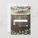 Vineyard greenery rsvp cards featuring a country barn dark oak barrel background, twinkle string lights, botanical green watercolor foliage, your monogram and a modern rsvp template. Find other wood wedding response cards at http://www.zazzle.com/special_stationery