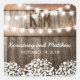 Baby's Breath String of Lights Wedding Stickers | barn oak barrel background, twinkle string lights, baby's breath and modern wedding wording. Find other country wedding stickers at http://www.zazzle.com/special_stationery
