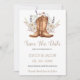 Set the tone for your big day with this Save the Date Western Invitation! Featuring cowboy boots and a rustic country design, this editable invite is perfect for a western wedding announcement.
