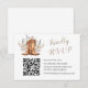 Say "I do" with charm using this Rustic Western Wedding RSVP Card! Featuring cowboy boots and country details, this editable card has a QR code RSVP for a modern twist on your rustic celebration. Want to go the traditional route and have the cards sent back to you in the mail? Envelopes can be included just toggle on or off for your preference.