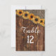Rustic Wood & Burlap Sunflower Wedding table number cards With trendy brush script font! ~ Check my shop to see the entire wedding suite for this design!