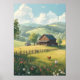 Rustic Countryside Cabin with Wildflowers Poster