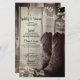 Customize the casual yet classy Rustic Cowboy Boots Country Western Floral Wedding Menu with the details of the meal that you will serve at your engagement barn party, bridal shower luncheon or marriage reception dinner by adding the salad or first course, entree or second course and dessert or third course. This charming custom ranch style menu features a digitally enhanced black and white sepia tone photograph of leather cowboy boots with a weathered barn wood background and white flowers adorning the corners.