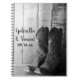 Customize the Rustic Cowboy Boots Country Western Wedding Spiral Notebook with the personal names of the bride and groom and specific marriage ceremony date create a unique guest book or advice book. This rustic chic custom ranch theme wedding note book features a black and white digitally enhanced photograph of leather cowboy boots with a weathered barn wood background.